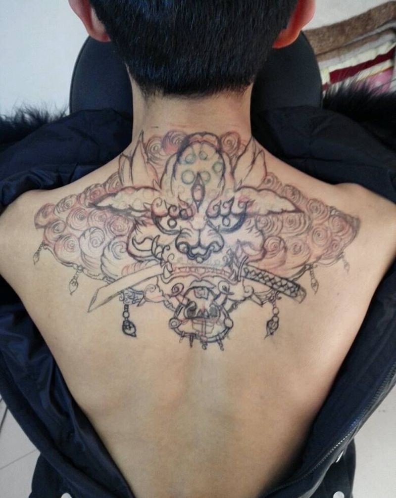 • 黑灰满背纹身图案