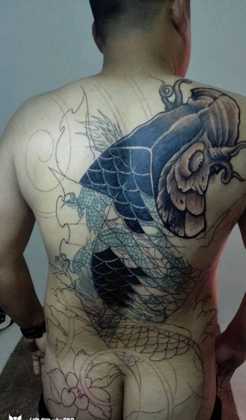 满背遮盖未完纹身图片
