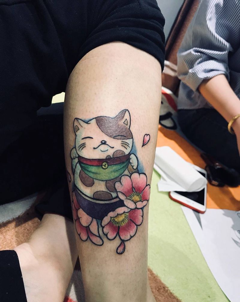 • T网红王老大花腿龙纹身图片_腿部新传统纹身图案