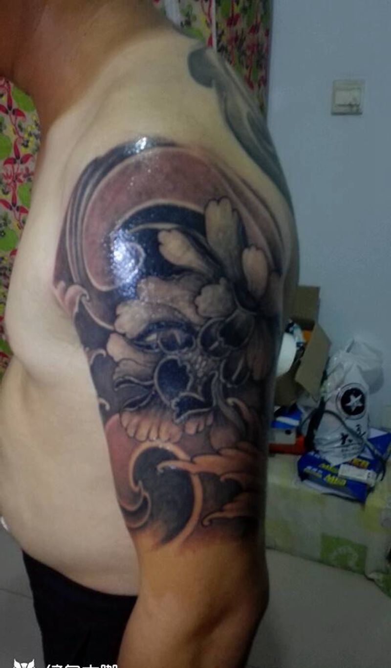 当前位置: 首页 >山东省烟台市纹身店-墨华刺青纹身图案>大臂牡丹完成纹身图片