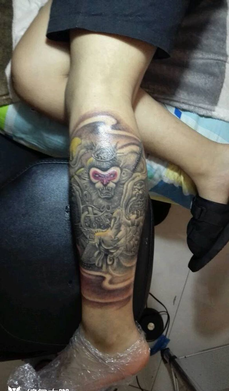 当前位置: 首页 >山东省烟台市纹身店-墨华刺青纹身图案>临摹种伟老师大圣完工纹身图片