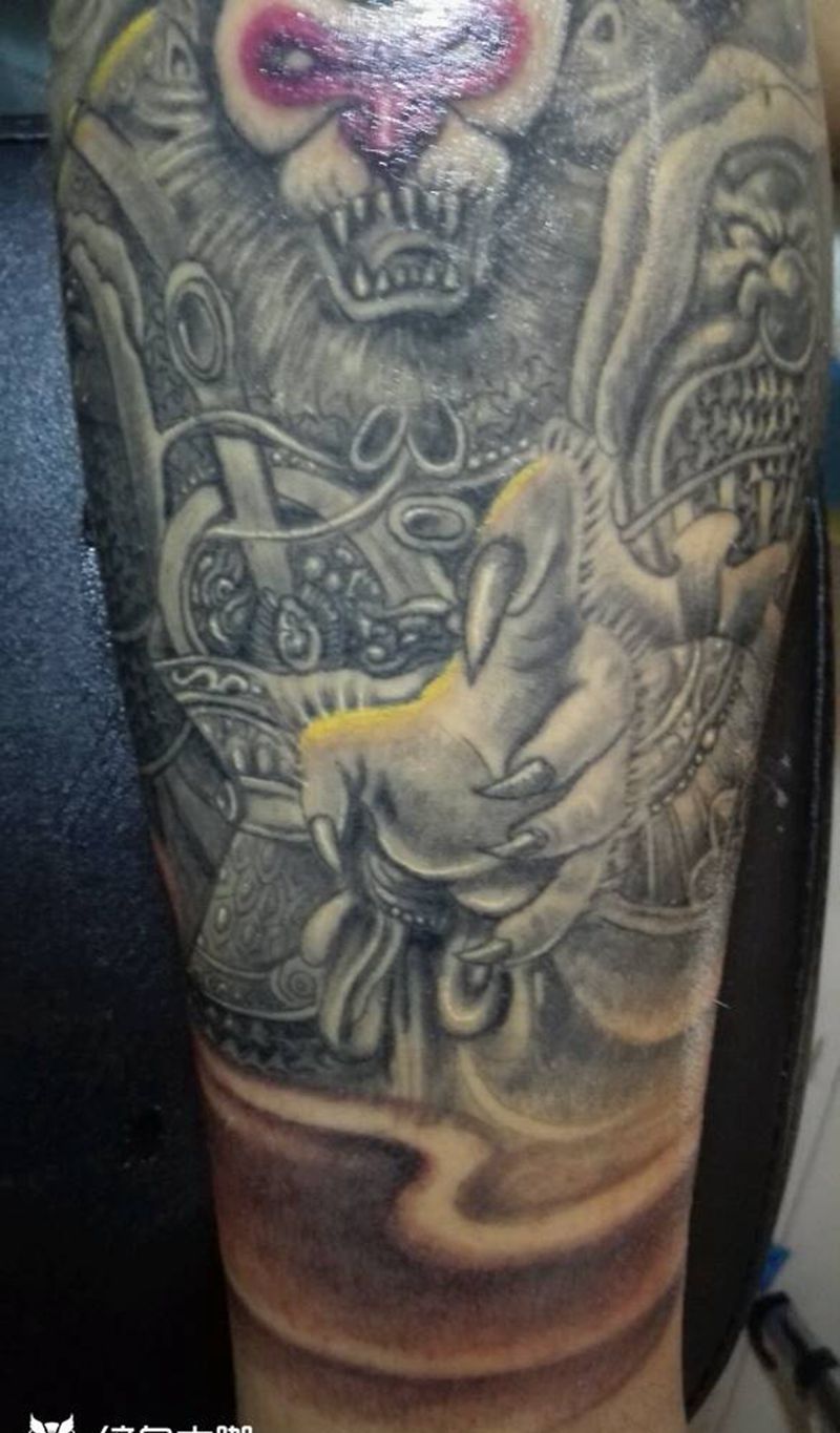 当前位置: 首页 >山东省烟台市纹身店-墨华刺青纹身图案>临摹种伟老师大圣完工纹身图片