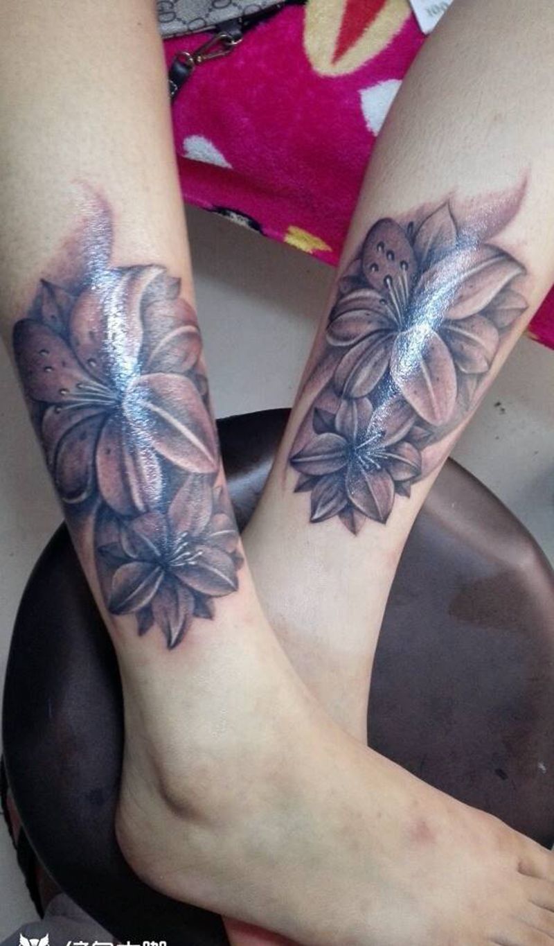 当前位置: 首页 >山东省烟台市纹身店-墨华刺青纹身图案>百合一对完成纹身图片