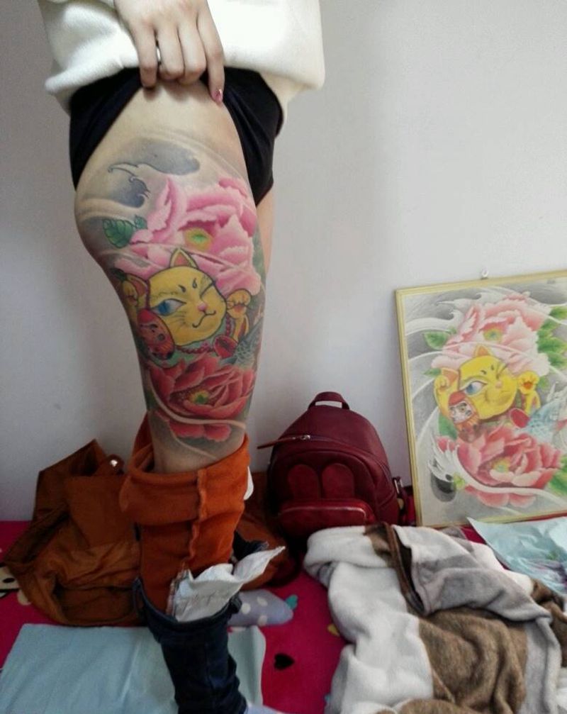 当前位置: 首页 >山东省烟台市纹身店-墨华刺青纹身图案>美女大腿完成,总共三次完活!纹身图片