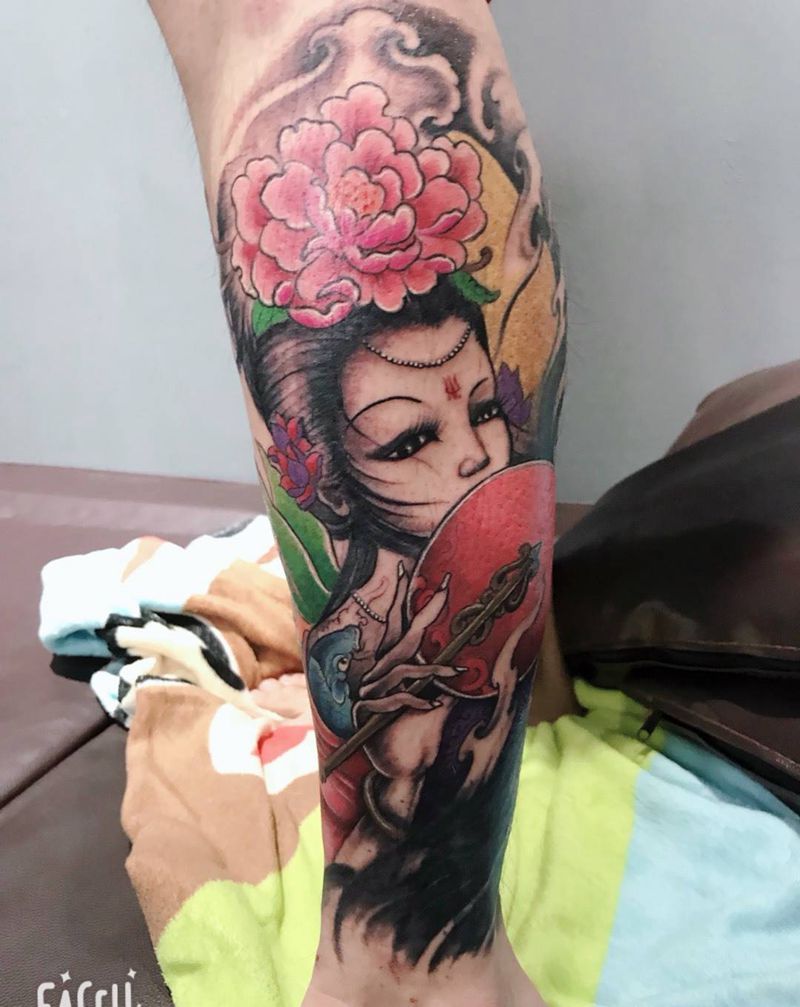 • T网红王老大花腿龙纹身图片_腿部新传统纹身图案