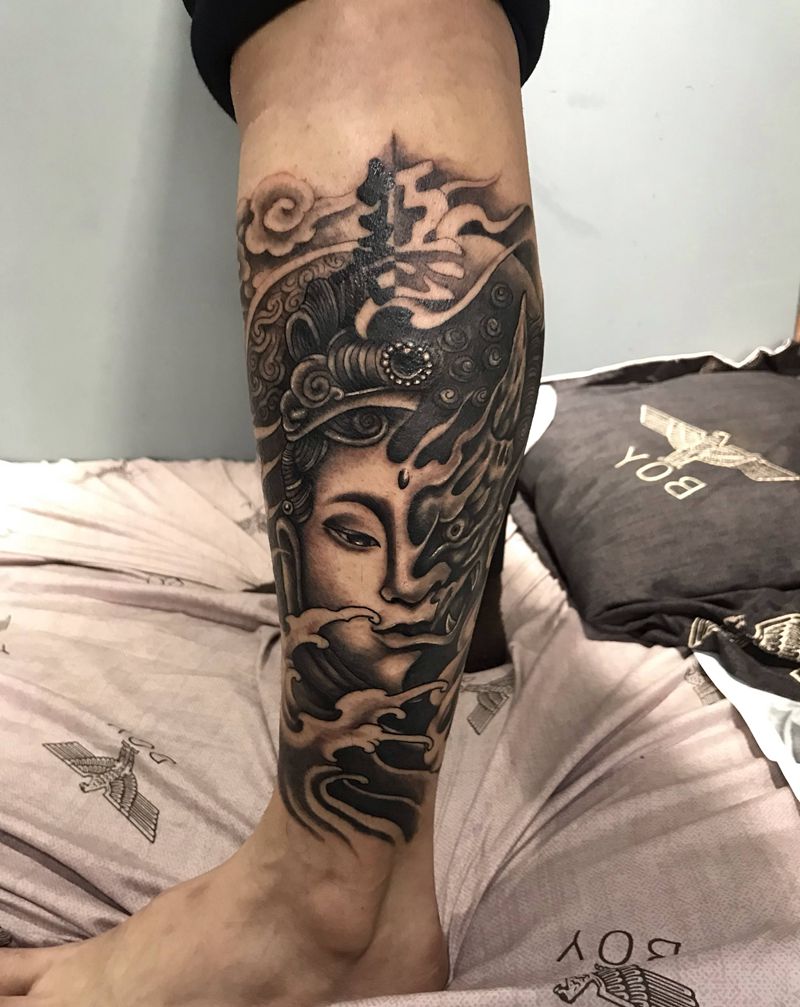当前位置: 首页 >山东省烟台市纹身店-墨华刺青纹身图案>善恶小腿纹身图片_腿部纹身图案
