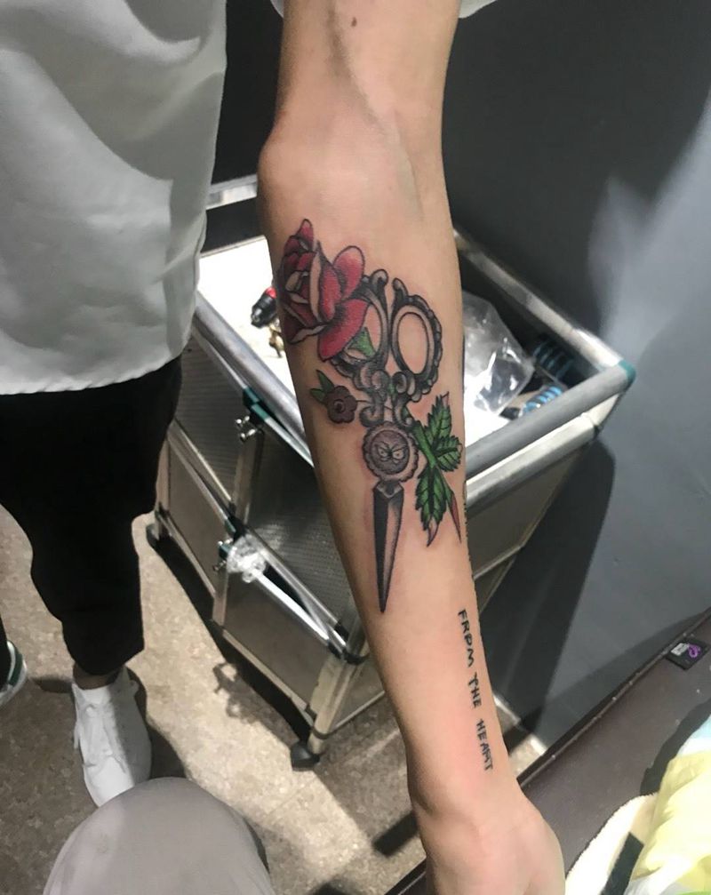 当前位置: 首页 >山东省烟台市纹身店-墨华刺青纹身图案>school小臂拼接纹身图片