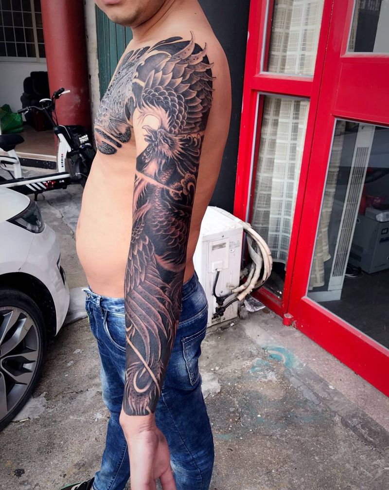 当前位置: 首页 >山东省烟台市纹身店-墨华刺青纹身图案>花臂加遮盖纹身图片