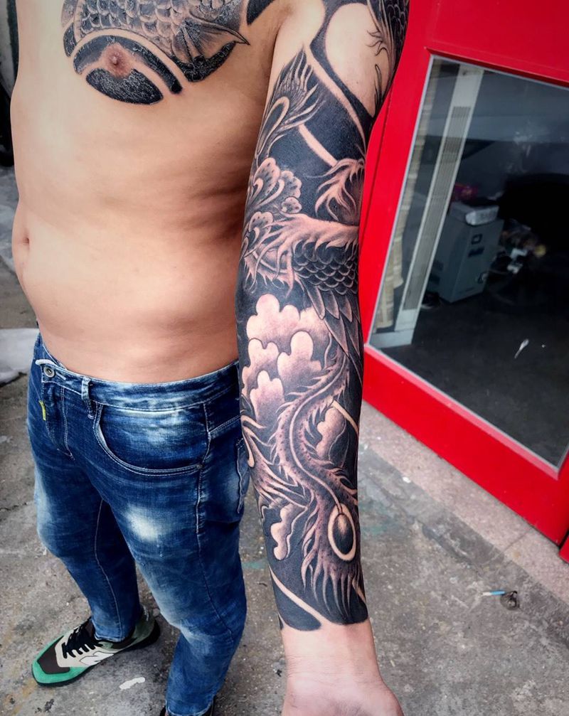 当前位置: 首页 >山东省烟台市纹身店-墨华刺青纹身图案>花臂加遮盖纹身图片