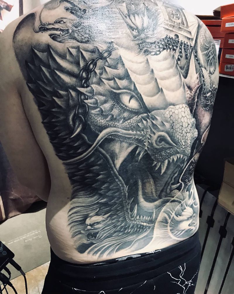 • T云龙九郎纹身图片_背部老传统云龙九郎纹身图案