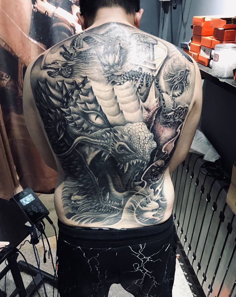• 黑灰满背纹身图案