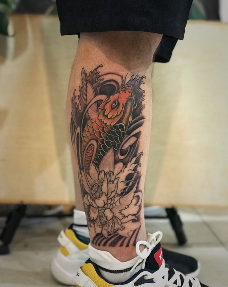 当前位置: 首页 >山东省东营市纹身店-彫卓刺青纹身图案>小腿新传统鲤鱼纹身图片_腿部新传统鲤鱼纹身图案