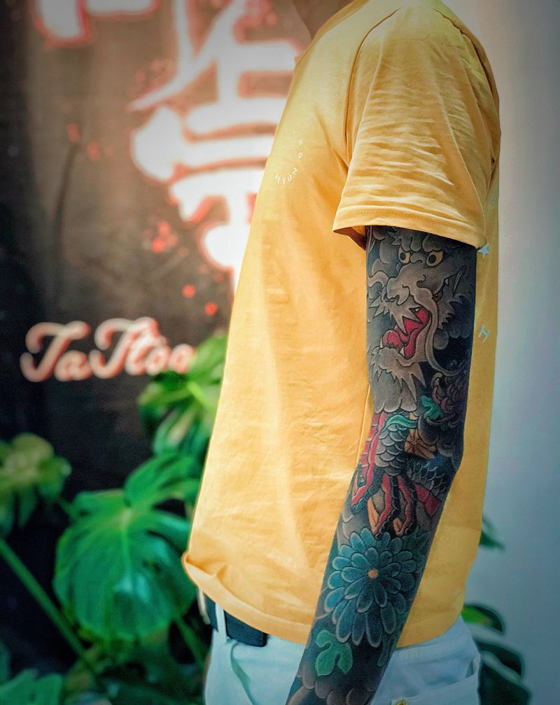 • T网红王老大花腿龙纹身图片_腿部新传统纹身图案