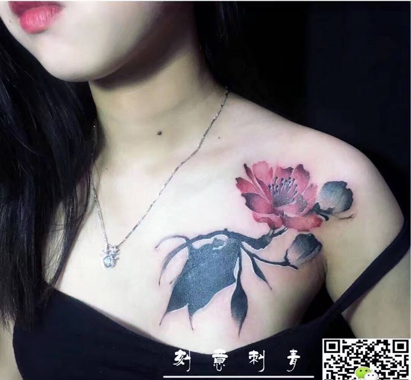 • 女性大花胸纹身_43张霸气漂亮的女性大花胸纹身图案作品