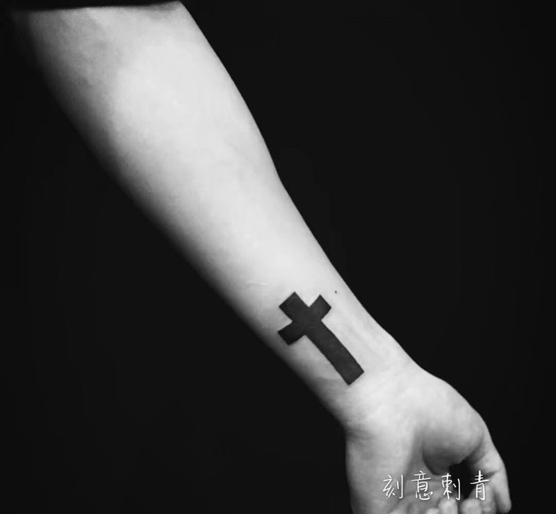 遮盖纹身图片_成品手臂清新几何宗教纹身图案