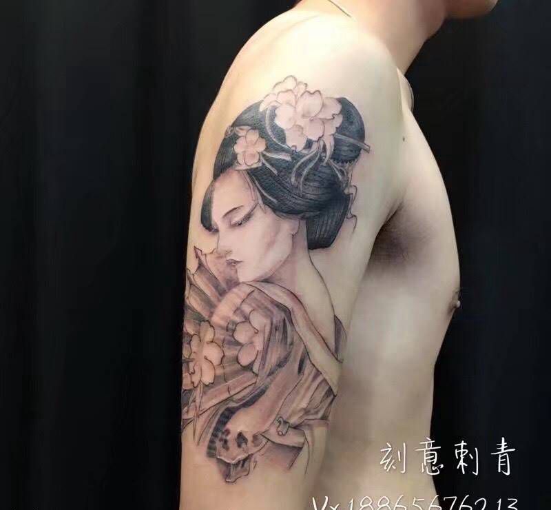 当前位置: 首页 >山东省烟台市纹身店-刻意刺青纹身图案>艺妓纹身图片_成品手臂传统人物纹身图案