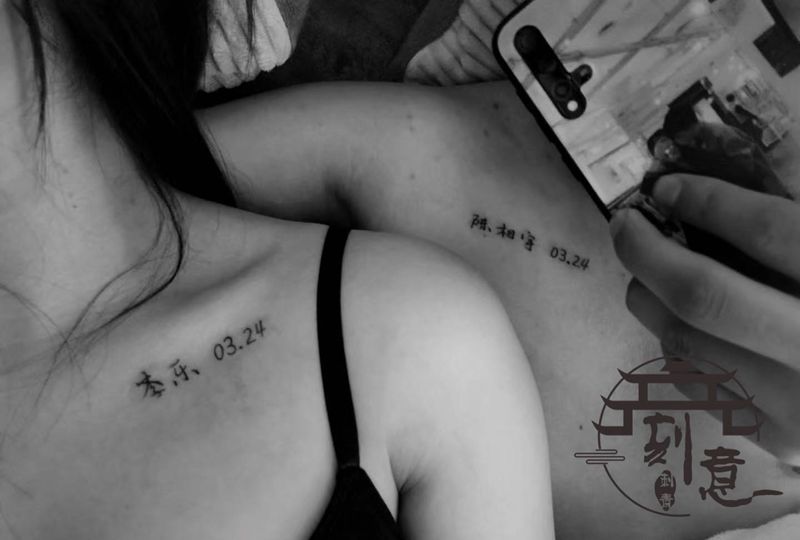 情侣纹身图片_胸部小清新情侣字纹身图案