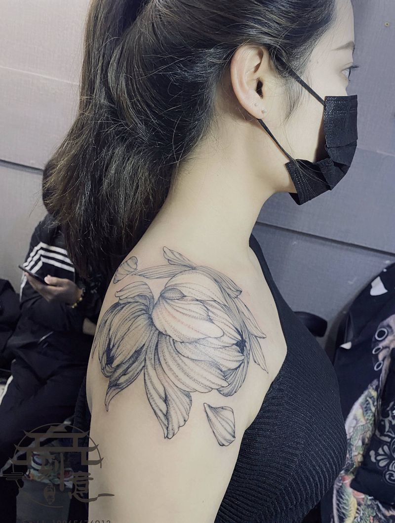 一组15张莲花纹身手