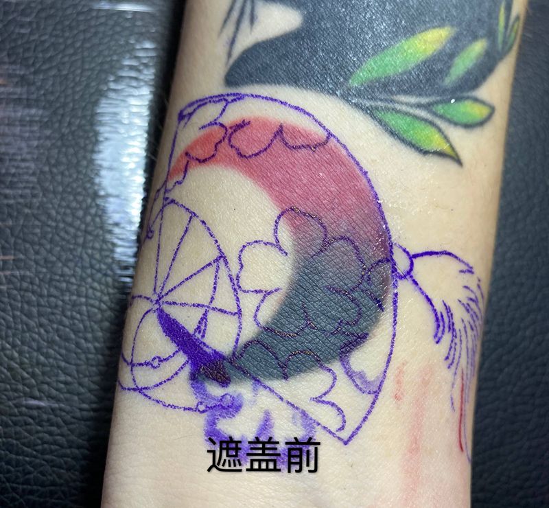 遮盖纹身图片_手臂扇子遮盖纹身图案