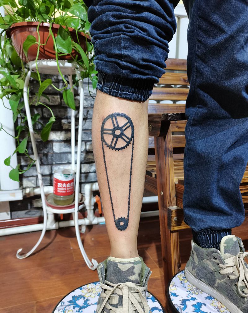 当前位置: 首页 >山东省潍坊市纹身店-忠義堂刺青纹身图案>清新齿轮链条纹身图片_腿部纹身图案