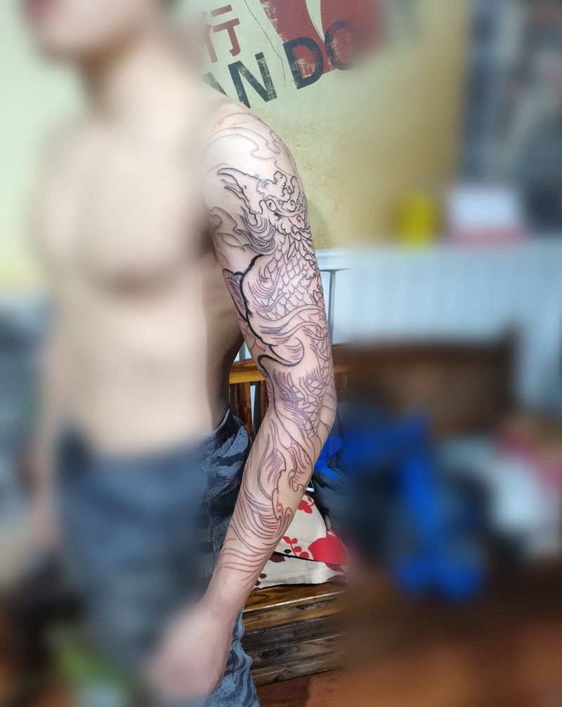 当前位置: 首页 >山东省潍坊市纹身店-忠義堂刺青纹身图案>花臂凤凰线条走起,纹身图片_手臂纹身图案