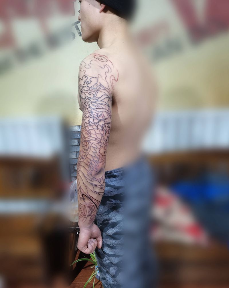 当前位置: 首页 >山东省潍坊市纹身店-忠義堂刺青纹身图案>花臂凤凰线条走起,纹身图片_手臂纹身图案