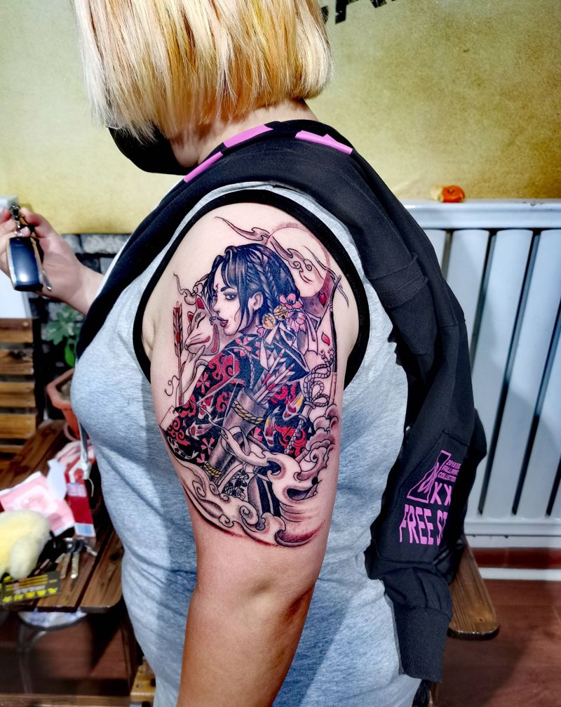 当前位置: 首页 >山东省潍坊市纹身店-忠義堂刺青纹身图案>艺伎纹身图片_手臂纹身图案