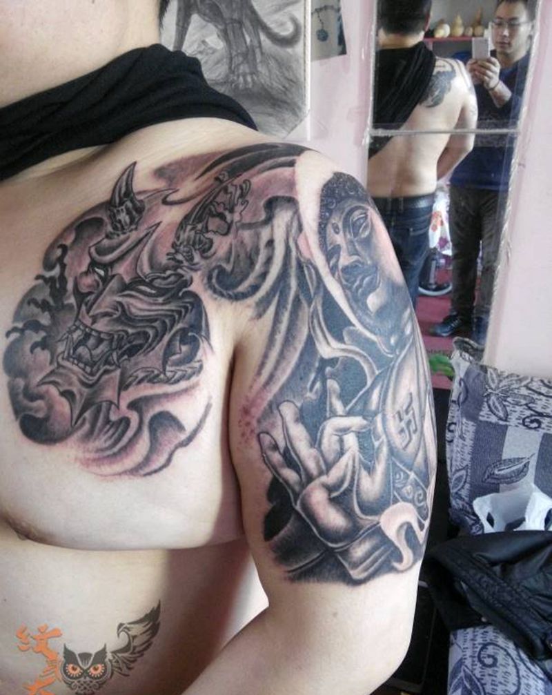 • 纹身吧推荐的披肩图腾半胛纹身图案作品展示