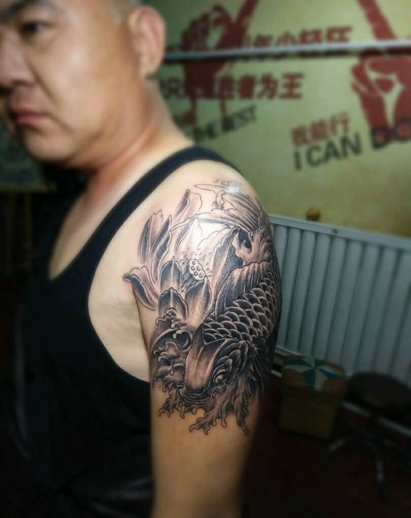 当前位置: 首页 >山东省潍坊市纹身店-忠義堂刺青纹身图案>大臂鲤鱼纹身图片