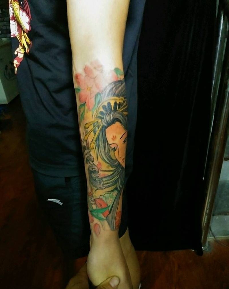 当前位置: 首页 >山东省潍坊市纹身店-忠義堂刺青纹身图案>小臂艺姬纹身图片