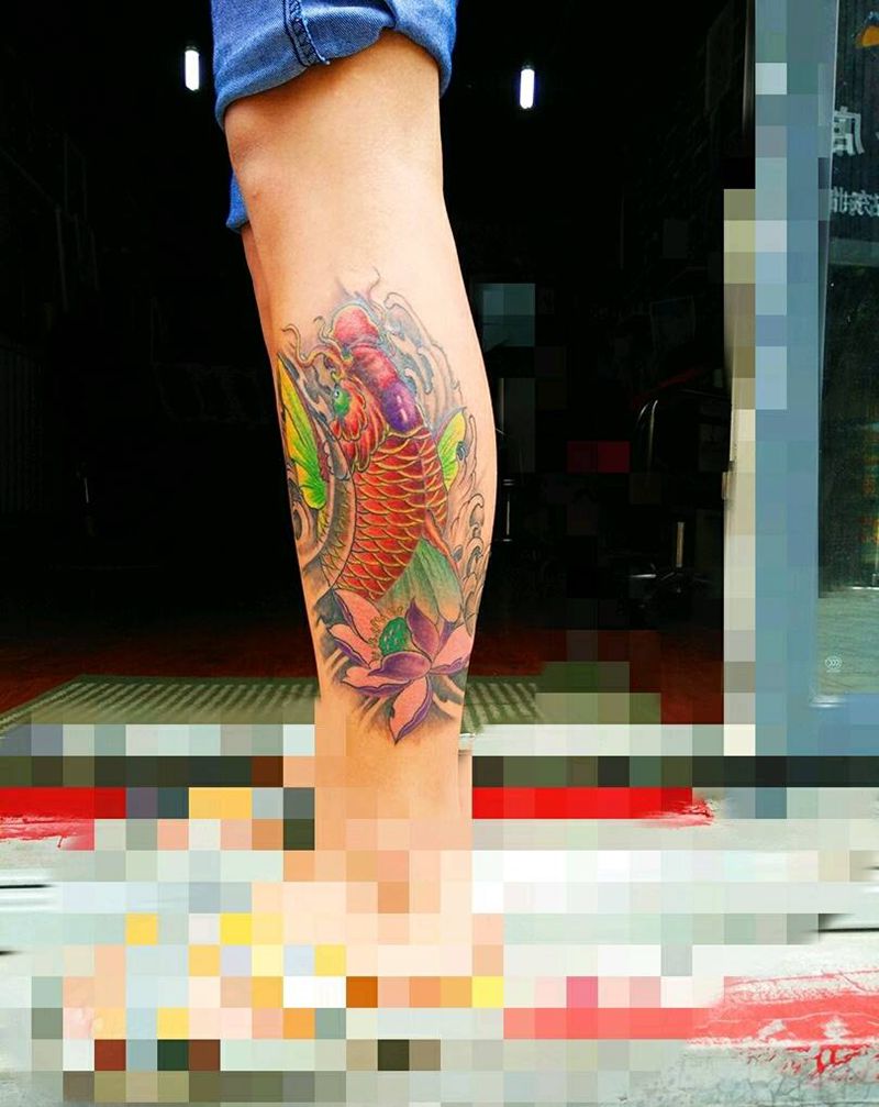 当前位置: 首页 >山东省潍坊市纹身店-忠義堂刺青纹身图案>小腿锦鲤纹身图片