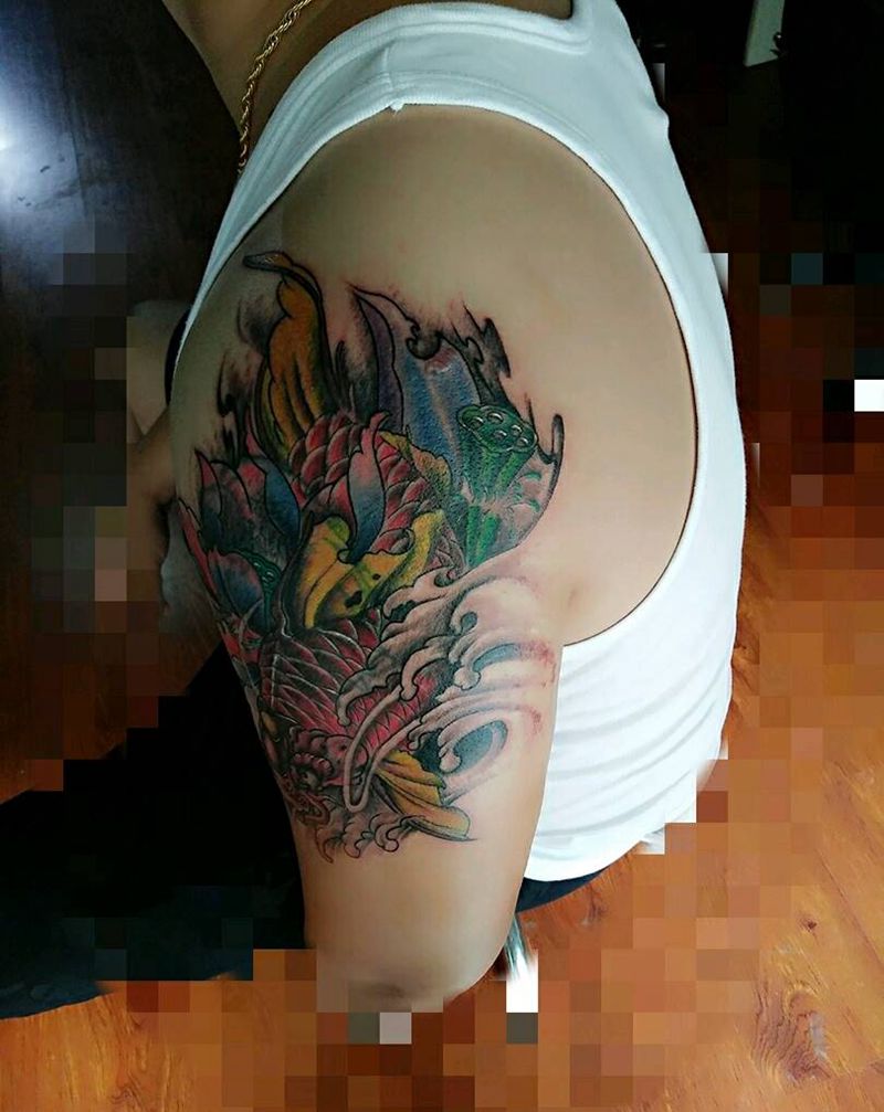 遮盖后,招财鲤纹身图片