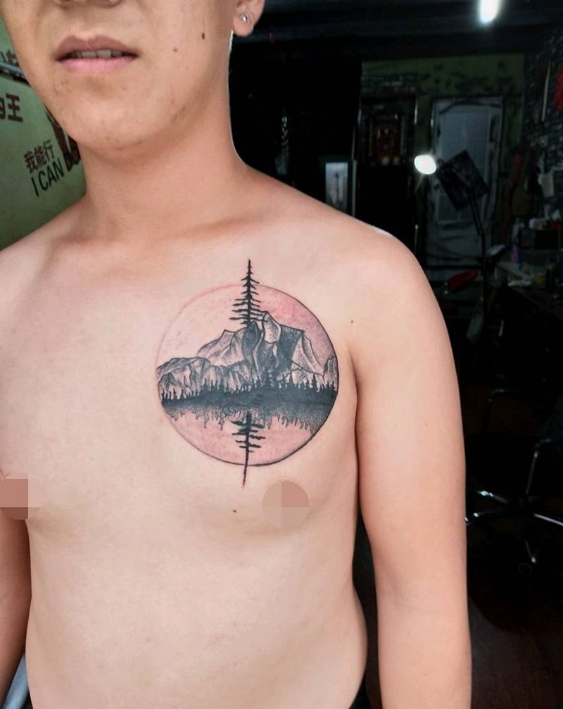 遮盖后,远方的山纹身图片_胸部清新原创纹身图案