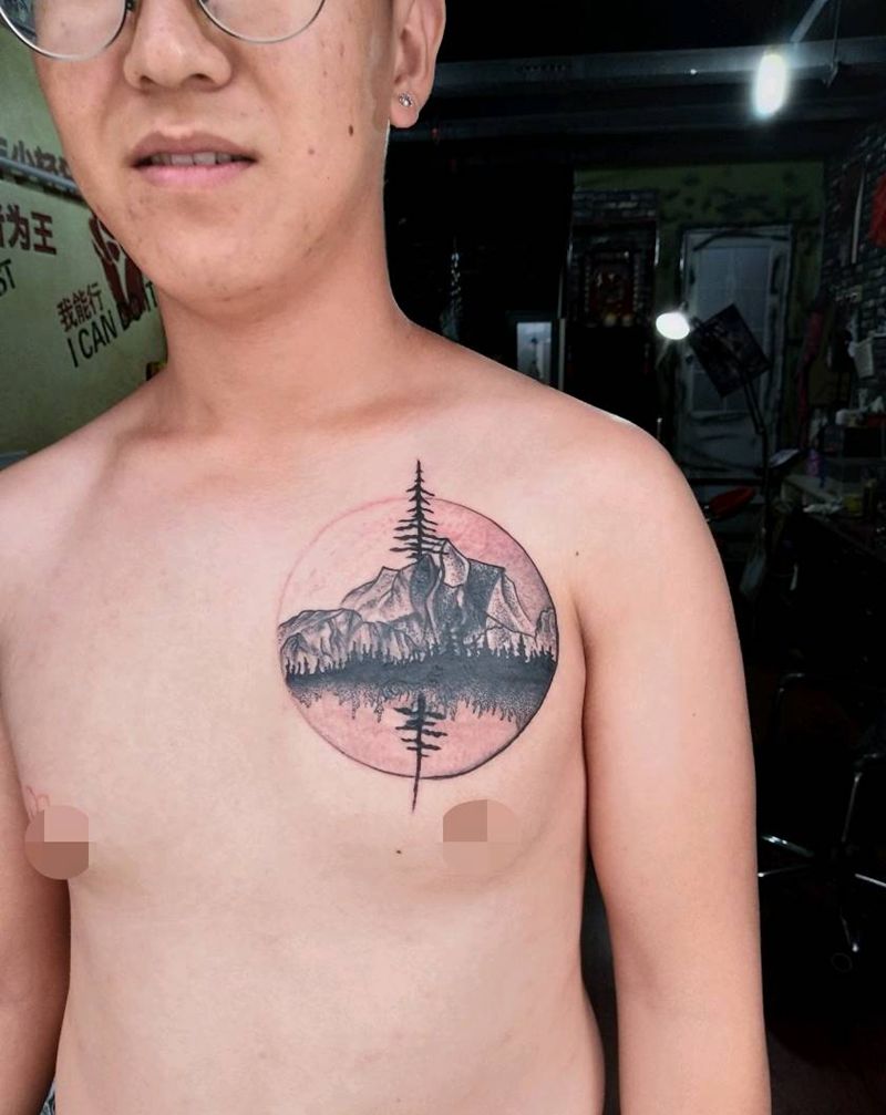 遮盖后,远方的山纹身图片_胸部清新原创纹身图案
