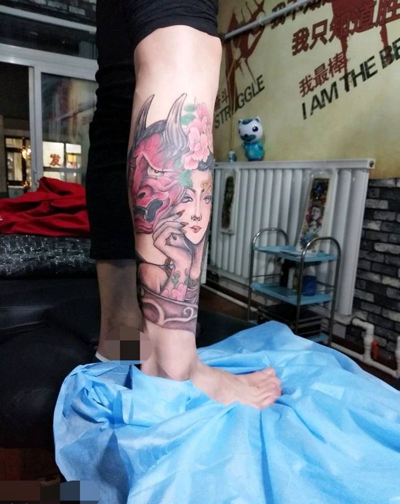 当前位置: 首页 >山东省潍坊市纹身店-忠義堂刺青纹身图案>小腿艺妓纹身图片_腿部传统人物成品纹身图案