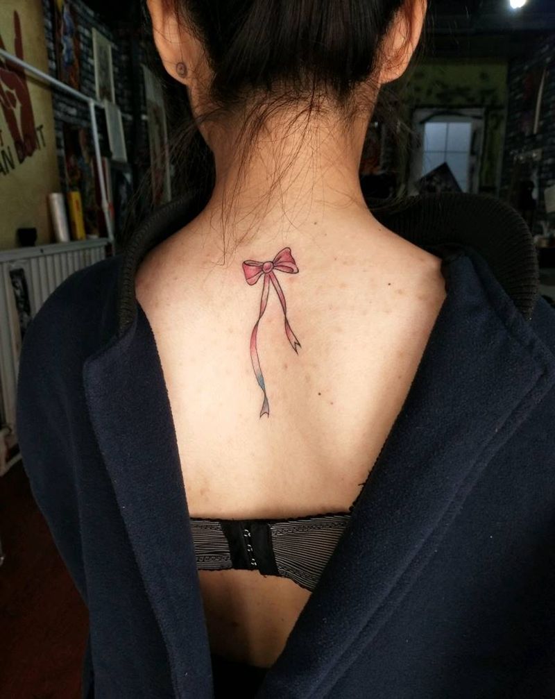 蝴蝶结纹身图片_背部清新成品纹身图案