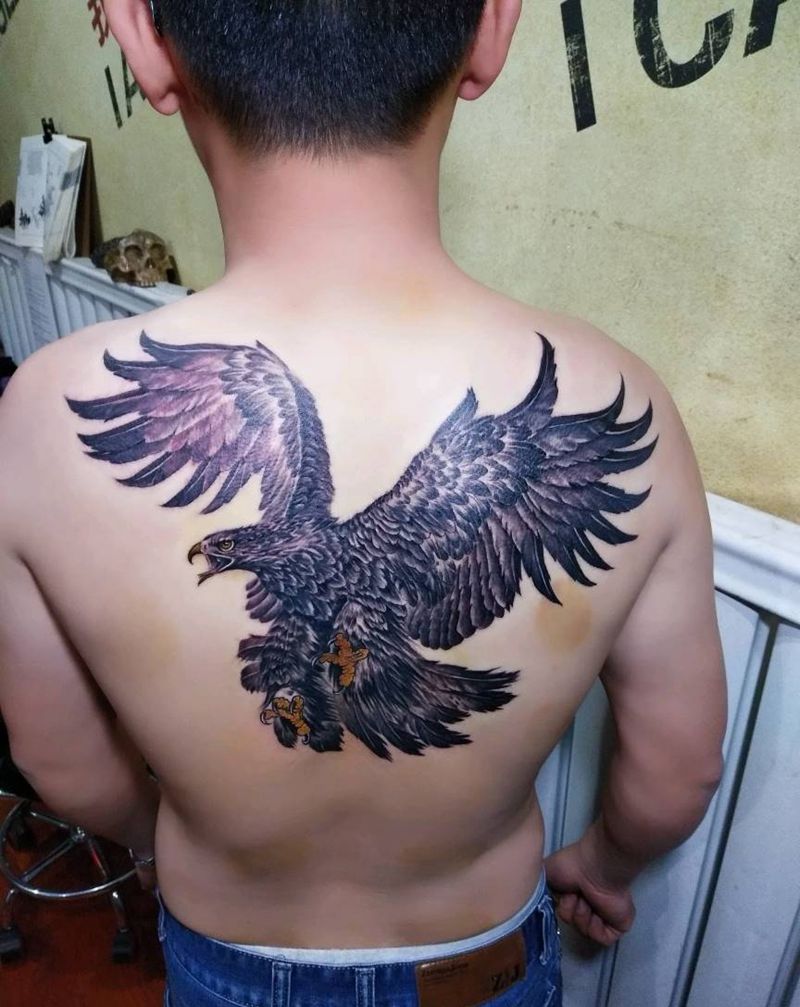 大鹏展翅纹身图片_背部写实动物成品纹身图案