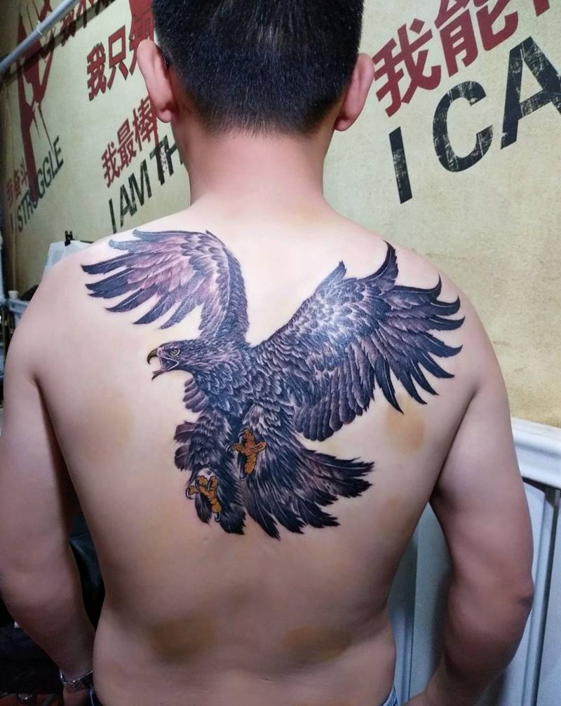 大鹏展翅纹身图片_背部写实动物成品纹身图案