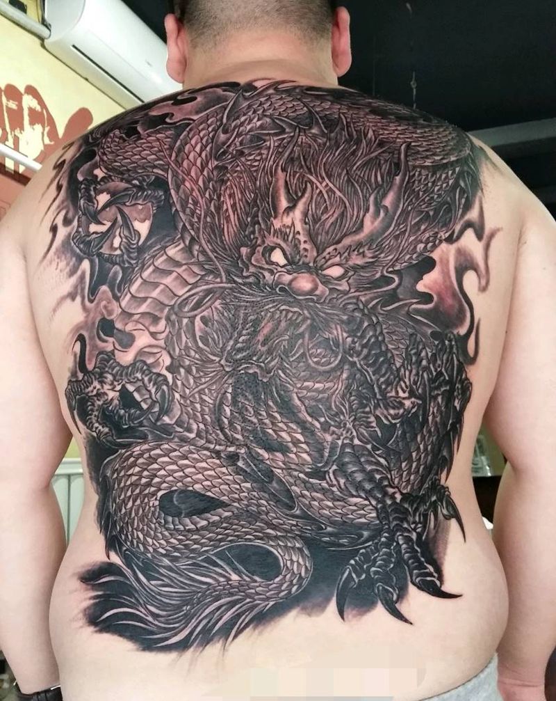 满背龙纹身图片_背部传统成品纹身图案