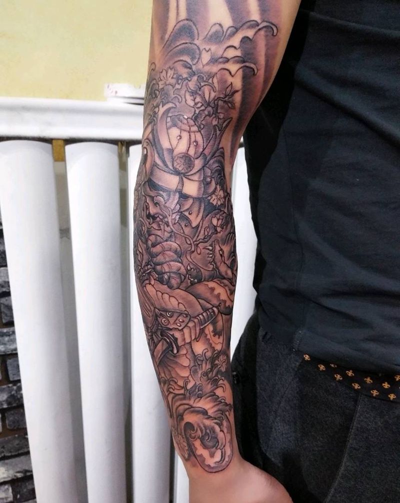日式武士纹身图片_手臂鬼神成品纹身图案