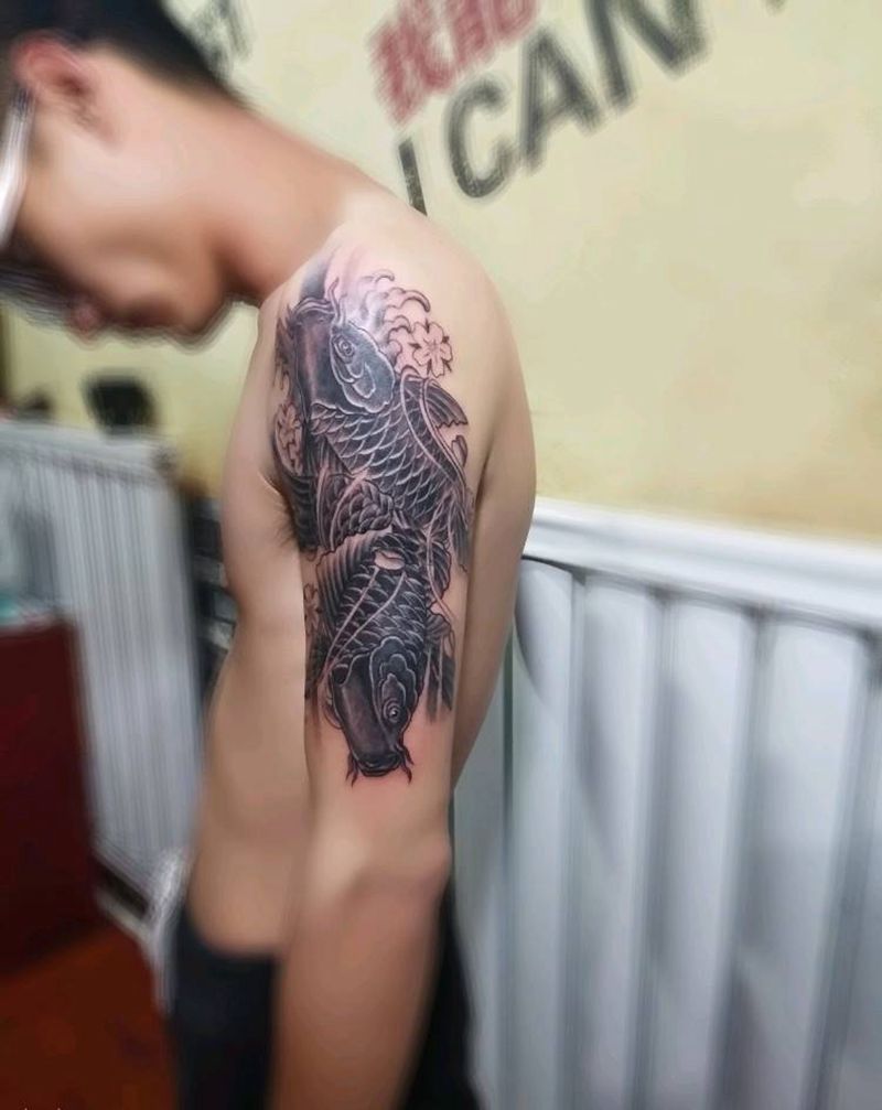 当前位置: 首页 >山东省潍坊市纹身店-忠義堂刺青纹身图案>大臂,双条锦鲤,纹身图片