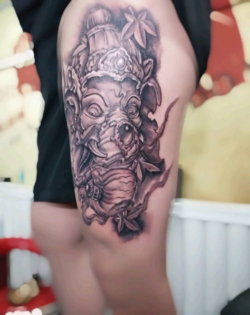 当前位置: 首页 >山东省潍坊市纹身店-忠義堂刺青纹身图案>象神纹身图片_腿部宗教成品纹身图案
