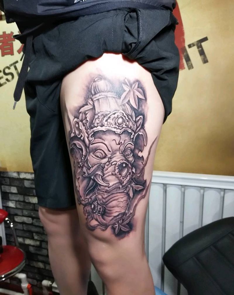 当前位置: 首页 >山东省潍坊市纹身店-忠義堂刺青纹身图案>象神纹身图片_腿部宗教成品纹身图案