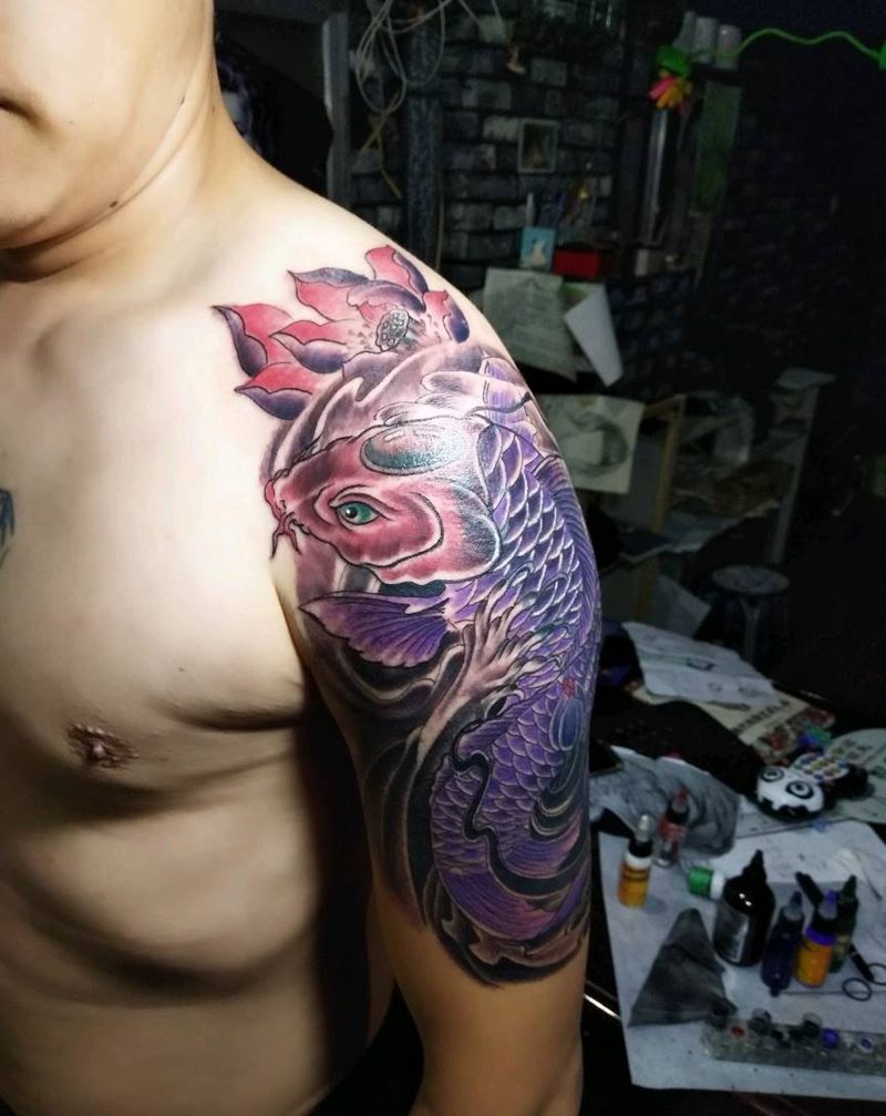 当前位置: 首页 >山东省潍坊市纹身店-忠義堂刺青纹身图案>遮盖后大臂鱼纹身图片_手臂传统成品纹身图案