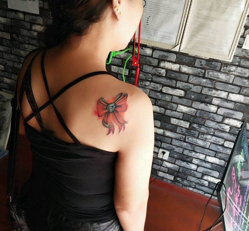 当前位置: 首页 >山东省潍坊市纹身店-忠義堂刺青纹身图案>蝴蝶结纹身图片_背部水彩纹身图案