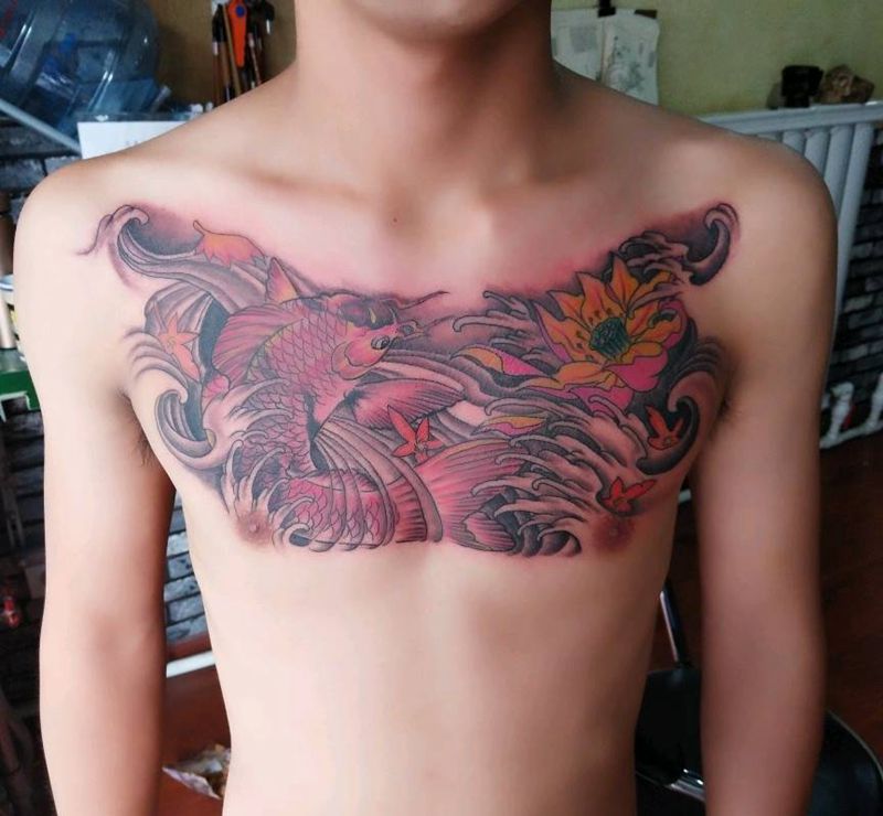当前位置: 首页 >山东省潍坊市纹身店-忠義堂刺青纹身图案>花胸招财锦鲤纹身图片