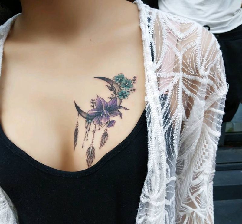 • 女性大花胸纹身_43张霸气漂亮的女性大花胸纹身图案作品