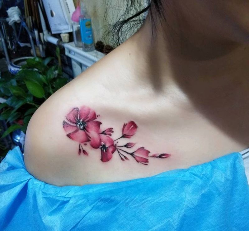 水彩清新小图纹身图片_胸部水彩纹身图案