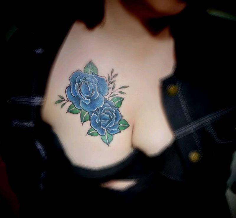 • 女性大花胸纹身_43张霸气漂亮的女性大花胸纹身图案作品