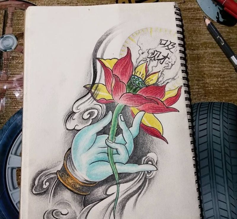 一组15张莲花纹身手